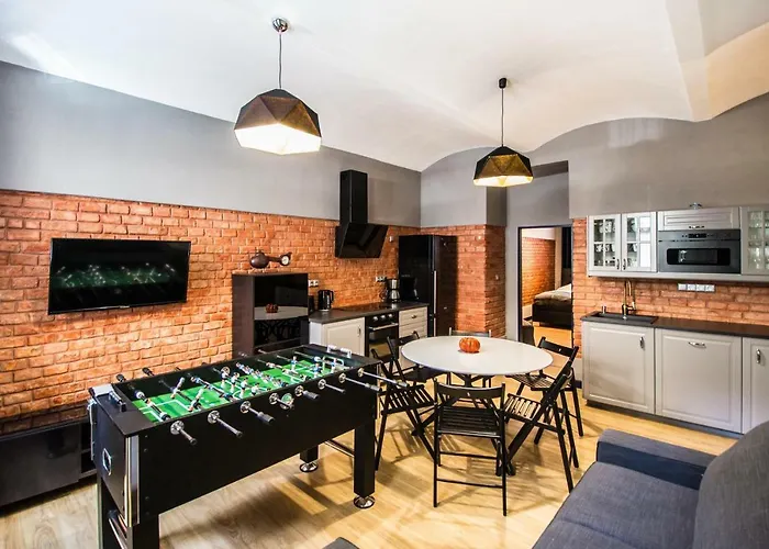 Το διαμέρισμα 3Bdr Ruterra Apt With Table Football 90 μ^2, που βρίσκεται στην περιοχή Πράγα 03 δίπλα σε Παλάτς Ακρόπολις, φιλοξενεί έως 10 άτομα. Κουζίνα στο κατάλυμα περιλαμβάνει φούρνο μικροκυμάτων, ηλεκτρικό βραστήρα και σκεύη κουζίνας.